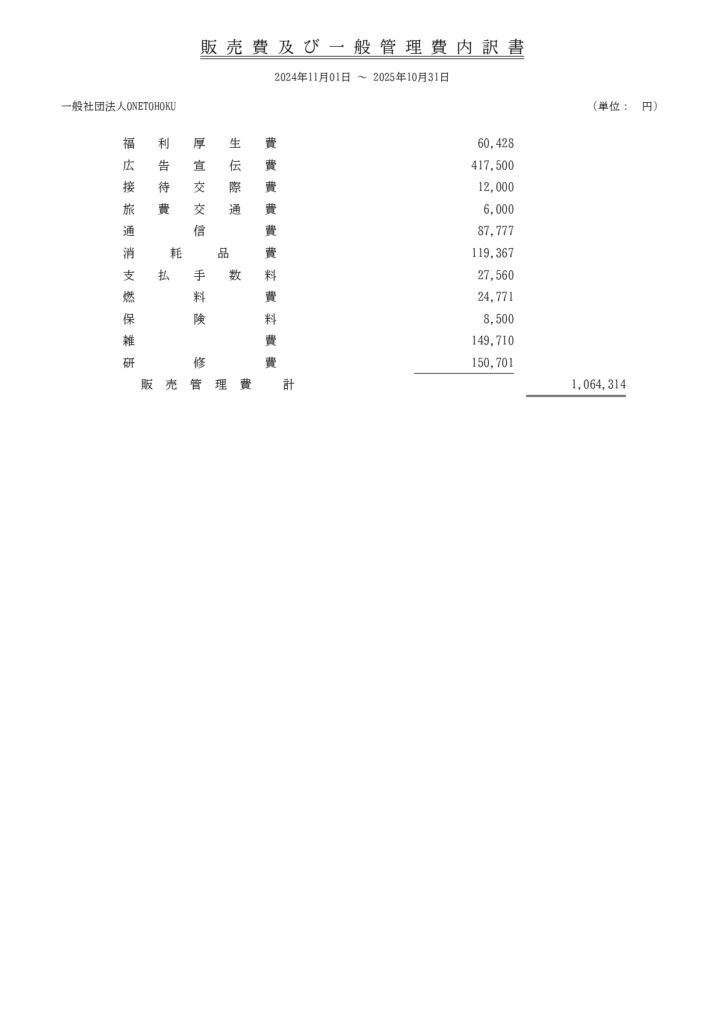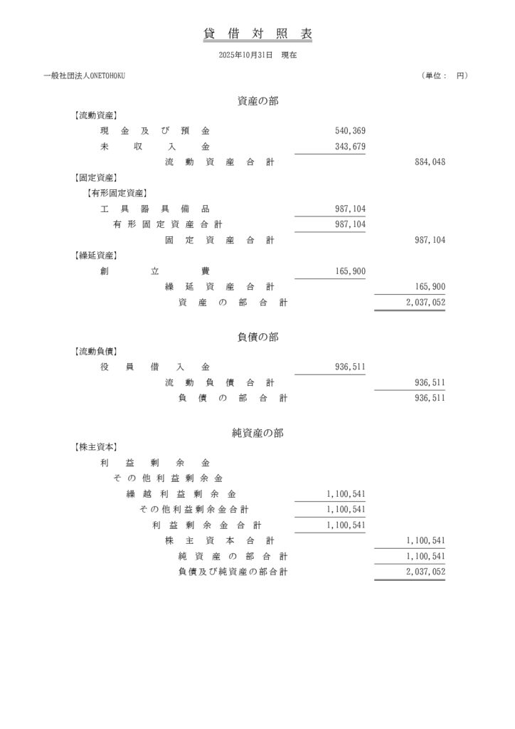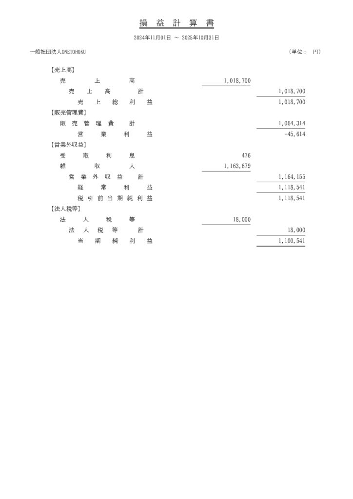 一般社団法人 ONE TOHOKUの財務諸表を以下の通り公告いたします。